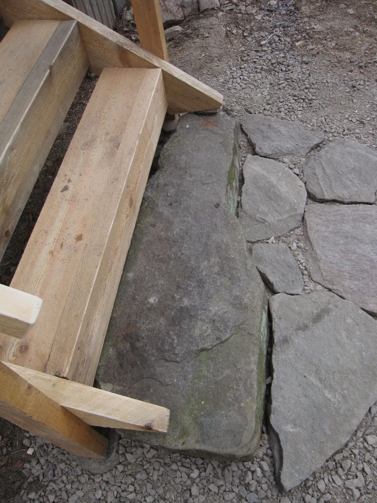 Jos minun mielipidettä kysytään, niin vanhan talon sisäänkäynti pitää olla luonnonkivillä katettuna eikä julmetulla betoniaskelmalla kuten pääsisäänkäyntimme. Haaveilen, että betoni piikataan pois, ja tilalle laitetaan iso laakea kivi askelmaksi, tai vaikka kaksi kiveä. Sopivat kivetkin löytyisi ihan omalta tontilta.